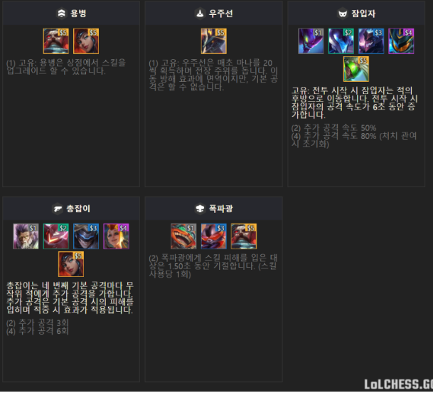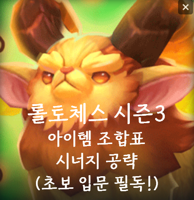 위의 1티어 덱을 위주로 시너지를 운영하는 게 롤토체스 시즌3 초반겜 감을 잡고 재미를 붙힐 수 있을 겁니다ㅎㅎ