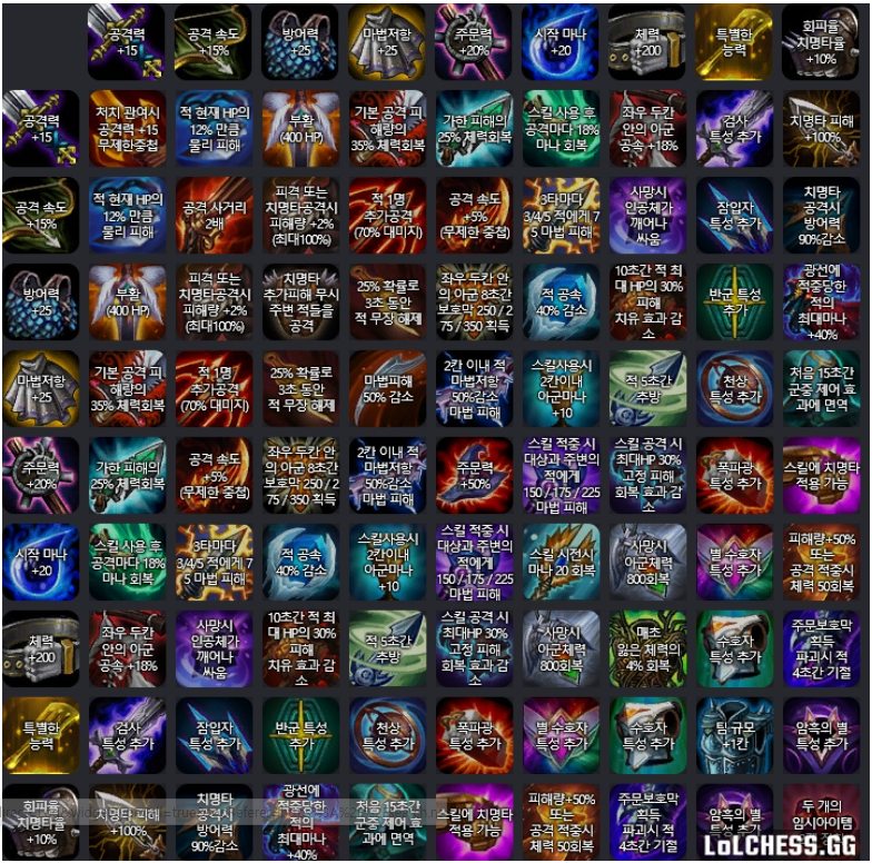 롤토체스 아이템 조합표 (V 1.07 기준)